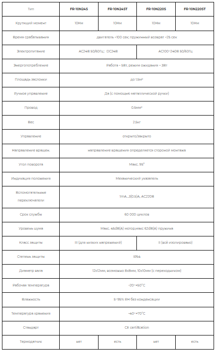 Линейка электроприводов включает в себя модели с крутящим моментом от 3Nm до 15Nm. Электродвигатель Mabuchi motor, используемый так же в электроприводах Belimo, обеспечивает надежность срабатывания.