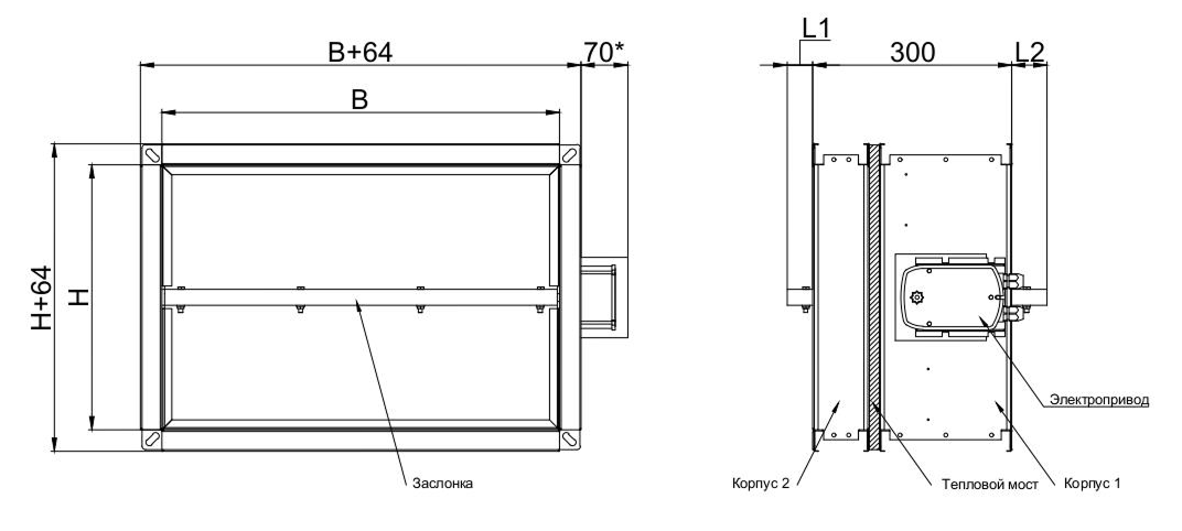 ПРЯМОУГОЛЬНЫЙ ПРОТИВОПОЖАРНЫЙ КЛАПАН НОРМАЛЬНО ОТКРЫТЫЙ. EI 120