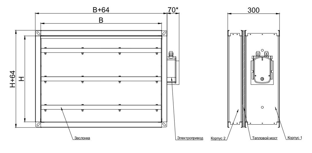 Канальные клапаны в лифтовом исполнении изготавливаются только прямоугольно сечения. клапан состоит из корпуса 1 мм оцинкованной стали прямоугольной формы, привода заслонки, который расположен снаружи корпуса. Корпус клапана имеет длину 200 мм и конструктивно аналогичен отрезку воздуховода, такой же длины, с монолитными фланцами шириной 30 мм. В качестве уплотнителя используется термоактивная лента, которая герметизирует проход при воздействии температуры свыше 140 °С. Особенностью данных клапанов является отсутствие вылета заслонки за габарит корпуса клапана. Клапан лифтового исполнения может быть изготовлен как противопожарный КПП нормально закрытый (НЗ), так и нормально открытый (НО). В соответствии с требованиями нормативных документов все нормально открытые противопожарные клапаны комплектуются электромеханическими приводами с возвратной пружиной, электроприводами реверсивного типа или электромагнитными приводами. Клапаны не подлежат установке в помещениях категорий А и Б по взрывопожароопасности. Окружающая среда не должна содержать агрессивных паров и газов в концентрациях, разрушающих металлы, лакокрасочные покрытия и электроизоляцию. Клапан устанавливается в конструкциях, где обязательным требованием является отсутствие вылета заслонки за пределы толщины ограждающей конструкции. Данные клапаны могут монтироваться в перегородке лифтовых шахт.
