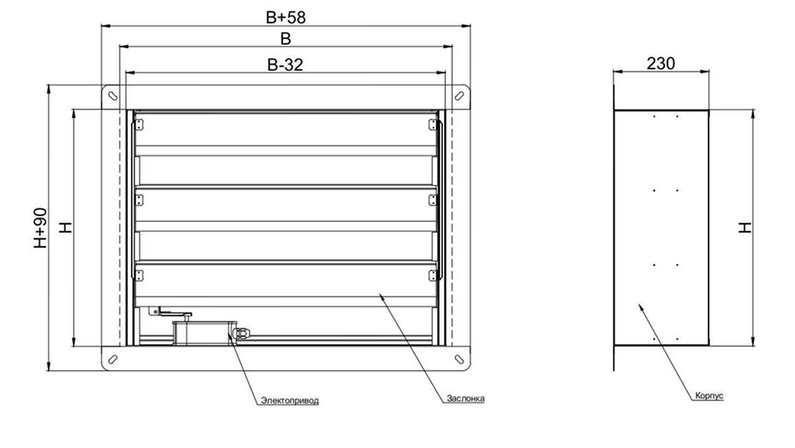 ПРЯМОУГОЛЬНЫЙ ПРОТИВОПОЖАРНЫЙ КЛАПАН НОРМАЛЬНО ЗАКРЫТЫЙ EI 90