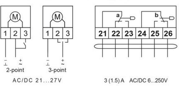 Электропривод содержит два встроенных переключателя, которые могут устанавливаться на различный угол сигнализации. Промежуточное положение определяется по механическому указателю.