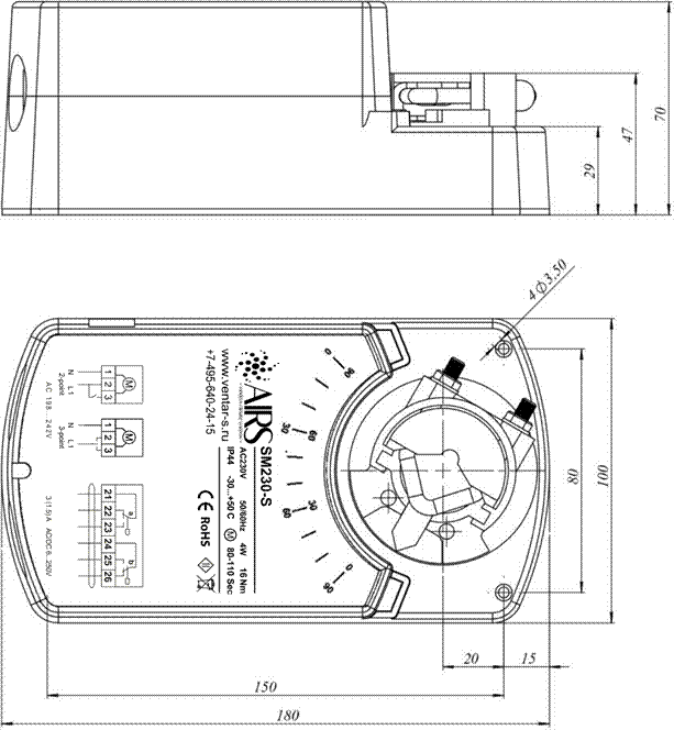 Электроприводпредназначен для управления воздушными клапанами систем общеобменной вентиляции зданийи сооружений.