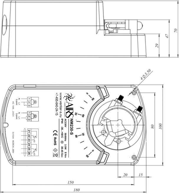 Монтаж Электропривод легко устанавливается непосредственно на вал створки клапана круглого сечения 10…20 мм или квадратного сечения 10…16 мм и закрепляется с помощью универсального крепежного устройства. К корпусу клапана электропривод крепится при помощи универсальной крепежной пластины или непосредственно на корпус клапана.